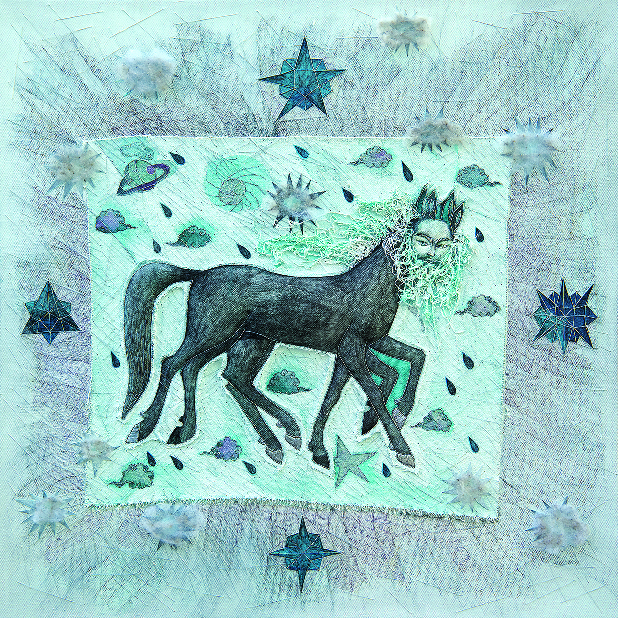 “Амин сүнс”, “Элч”, “Дотоод би” зэрэг холимог техник ерөнхийд нь ашиглаж хийсэн бүтээлүүдэд уран зөгнөлийн биежилт, бэлгэ тэмдэг зэргийн хосолмол байдал гүн тусжээ. Уг бүтээлүүдийг эсгий, даавуун материалтай холин акрилик будаг ашиглаж бүтээсэн байна. “Дотоод би” хэмээх бүтээл бол зураач Ж.Анунарангийн ертөнцийг шууд илтгэнэ. Магадгүй алган дээрээ тавиад уншиж буй ном шиг үсэг бүрээр нь мэдэрч танихгүй юм аа гэхэд ямартай ч “Бурхны хүү” үзэсгэлэнг урлаж байхад дотор нь ямархан ертөнц байр сууриа олж байсныг тольдож болох шиг санагдана. Модод, тойрон эргэлдэх гурван шувууны дунд байх эвэр, чихтэй хүн дүрст нэгэн. Магадгүй монгол домгийн “элф” ч юм шиг… Ерөөс шашинд буга, гөрөөс нь бүхий л амьд төрөлтнийг төлөөлдөг. Тиймдээ ч сүмийн дээвэр дээр бодь гөрөөсийг залдаг шүү дээ. Байгальтай илүү ойр, магадгүй түүний нэг хэсэг гэмээр уул усны савдаг мэт дүртэй тэрхүү амьтны гар дээр фото зургийн негативийг цаасан дээр хэвлэж гэрэлтүүлсэн цэнхэр өнгөтэй хүүхдийн толгой байна. Энэ нь “Бурхны хүү” цуврал бүтээлүүдийг санагдуулах бөгөөд зураачийн дотоод “би”-г хамгийн тод үнэнээр таниулна.
