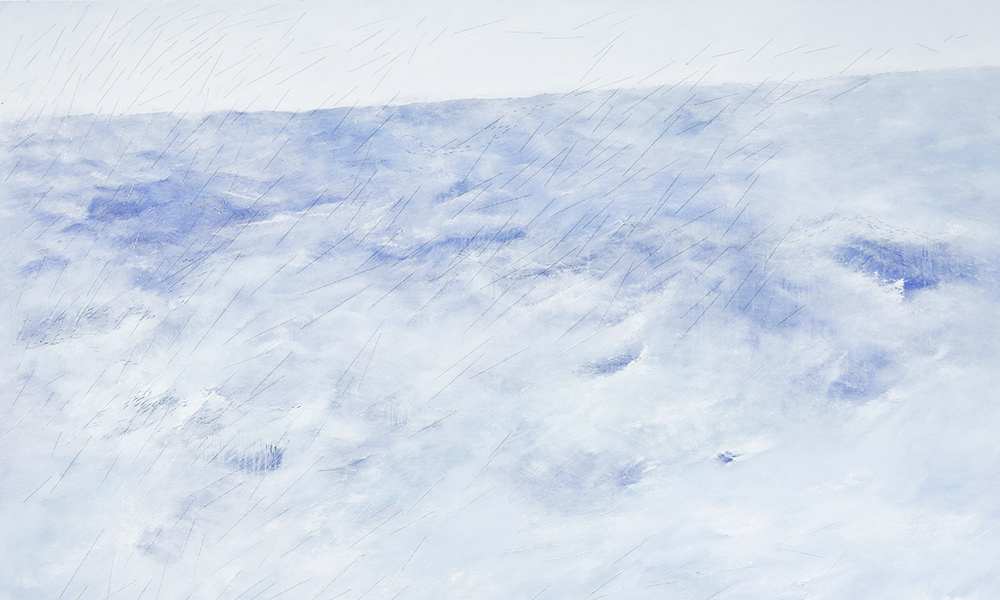 Дараагийн онцлох бүтээл бол “Амьдралын далай” нэрт зураг. Тийм ээ, энэ бол зүгээр нэг далай бус амьдралын далай. Нэг талаар зурагт далайн давалгаа хөөсөрч харагдах мэт боловч нөгөө талаар нэвсийн буусан хөглөгөр их манан дундаас уулсын цавчим хүйтэн оргилууд цухалзах шиг мэдрэмж төрүүлнэ. Дээгүүр нь шагласан нарийхан зурааснууд бол хүмүүс бид тэрхүү нууцлаг далай руу цуварч унах шиг, басхүү буцаад ирж байх шиг болно. Тиймдээ ч эхлэл, төгсгөл нь тодорхойгүй зураас татаад орхисон нь ойлгомжтой. Магадгүй энэ амьдралын далайг үзэгч болгон өөрөөр тайлбарлах болов уу. Учир нь аливаа нэг зүйл хоёр хүний мэдрэмжинд яв цав адилхан өнгийг олж буудаггүй билээ. Нөгөөтэйгүүр “Амьдрал далай”-г удаан ширтээд зогсвол зүүдний юм шиг ертөнцөд хөл тавина. Энэхүү уран зөгнөлийн, зэрэгцээ ертөнцийн сэжүүрээс зүүгдэн байх мэт мэдрэмжийг төрүүлснээрээ тус бүтээл илүү амьдлаг, сүнслэг санагдаж эхэлнэ. Амьдралд бид ийм тодорхой бус зүүд совингийн ертөнцөөс нисэн ирчихээд буцан одохдоо ч тэрхүү нууцлаг далайд хөл тавьдаг байж болно шүү дээ. Ийм л мөнхийн холбоо пянз шиг ахин дахин эргэлдэж, төгсгөлгүй тойрогт хүмүүний оршихуй уяатай байдаг ч юм билүү. Энэ л бодлыг нэгээхэн бүтээлээр төрүүлж чадсан нь бурхны үг шиг л бодогдох бөгөөд Ж.Анунаран зураачийн концепц хэрхэн зөв суудлаа эзэлж чадсаныг нь “Амьдралын далай”-гаас авах мэдрэмж бүрэн дүүрэн илтгэнэ.
