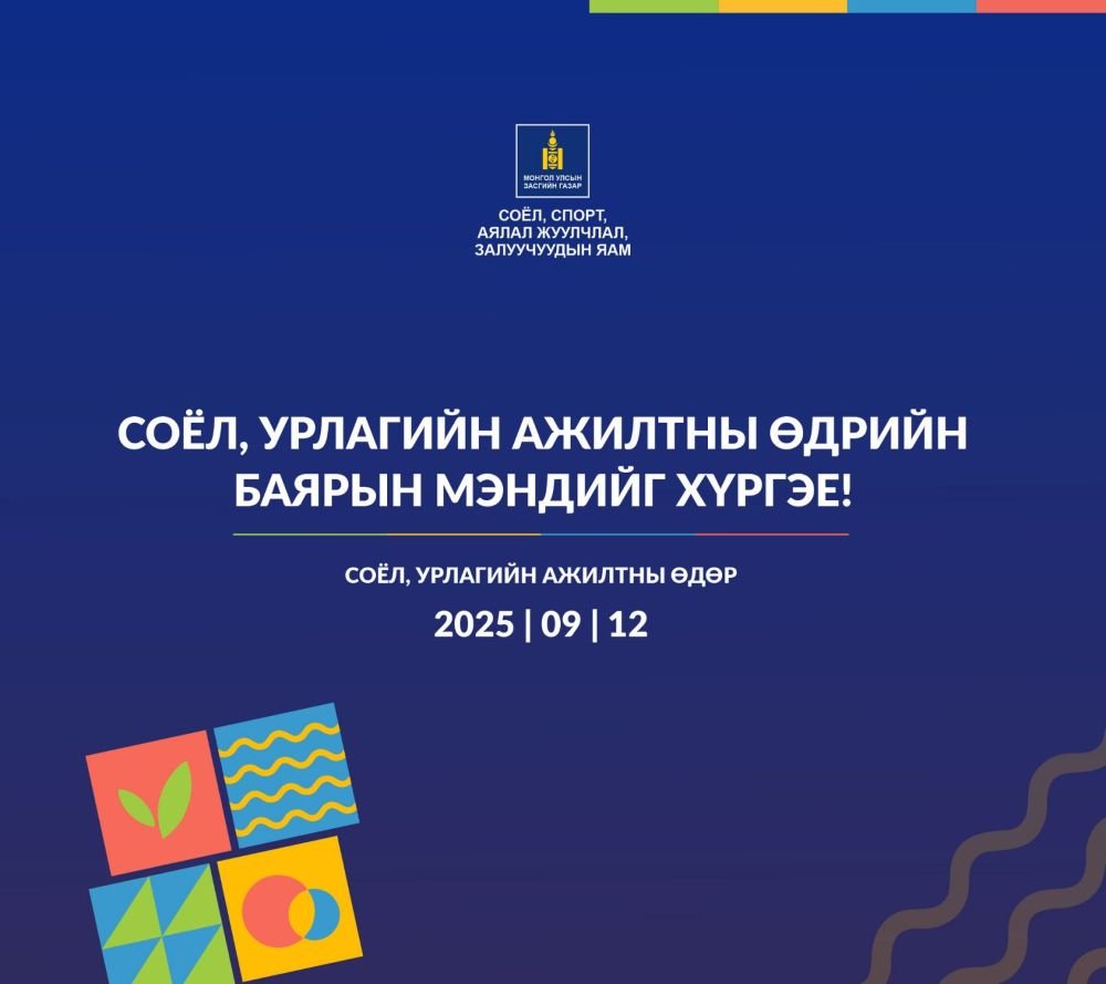 Нийтээр тэмдэглэх баярын болон тэмдэглэлт өдрүүдийн тухай хуулийн 5.2, 7.1 дэх заалтыг тус тус үндэслэн Монгол Улсын Засгийн газрын 2019 оны “Журам батлах тухай” 204 дүгээр тогтоолоор "Соёл, урлагийн ажилтны өдөр"-ийг 9 дүгээр сарын 2 дахь долоо хоногийн ням гаригт үндэсний хэмжээнд тэмдэглэж байхаар тогтсоноос хойш өнөөдөр 32 дахь намартайгаа ийнхүү золгож байна.
