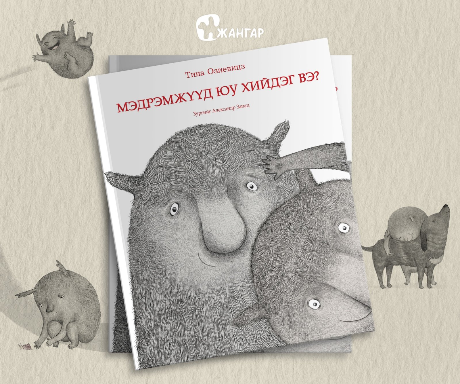Энэ тухай таны хүүхдэд хамгийн чухал үйлдэл, бодол сэтгэхүйн талаар мэдлэг олгох Тина Озиевицзын “Мэдрэмжүүд юу хийдэг вэ?” зурагт номыг Монсударын хүүхдийн номын “Жангар” редакцаас албан ёсны эрхтэйгээр орчуулан гаргажээ. Тус номын зургуудыг Александр Заиац зурсан бөгөөд тэрээр үлгэр домгийн дүрүүдийг өөрийнхөө төсөөлөл, уран сайхны өнцгөөр гарамгай илэрхийлдэг уран бүтээлч юм.