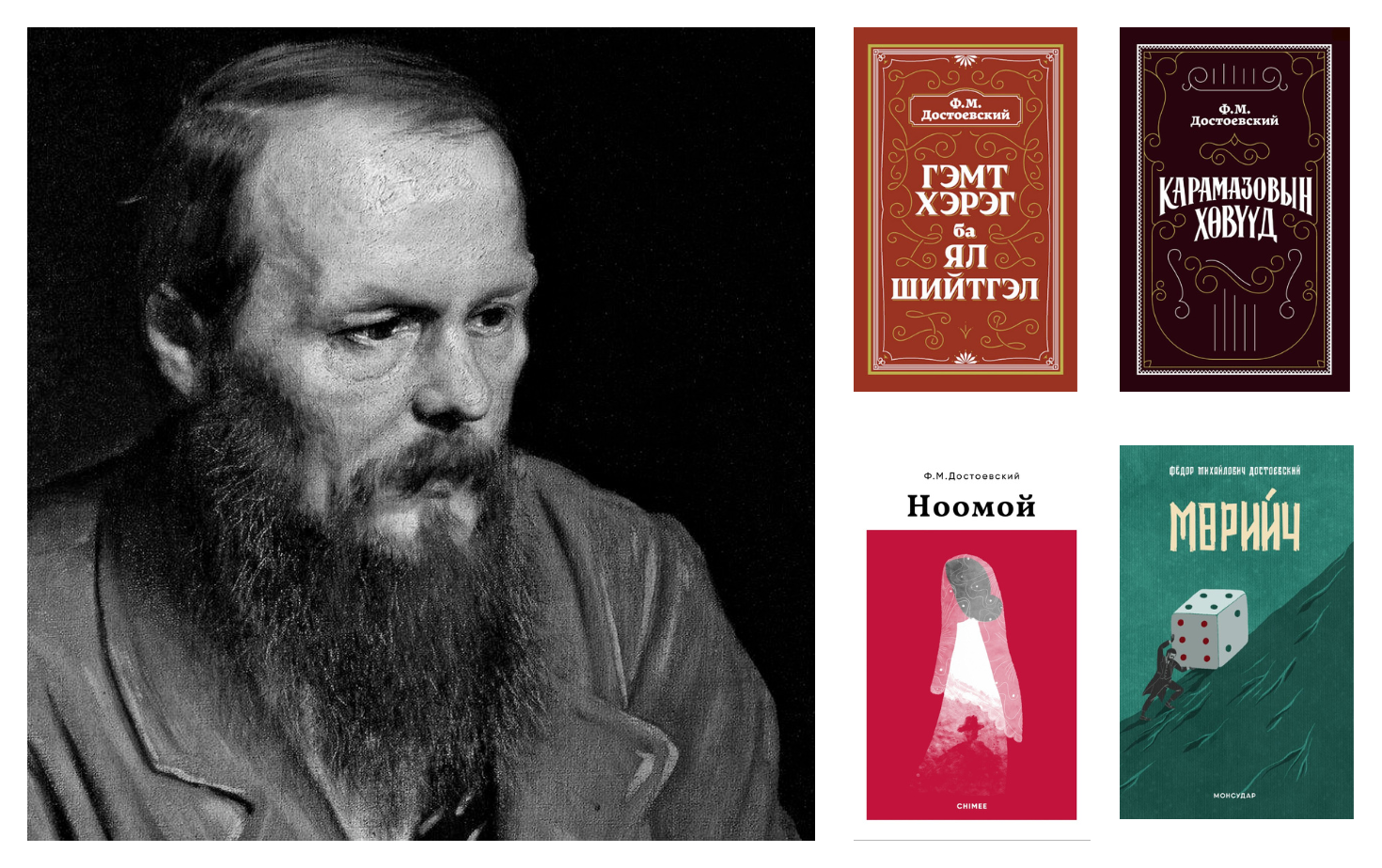 Достоевскийн бүтээлүүд түүнээс хойших болон орчин цаг хүртэлх дэлхийн уран зохиолын төлөөлөгч болсон эрхмүүдийг хүмүүжүүлсэн гэгддэг учир бүтээлээс нь онцлон сонгож, аль нь шидээвэр болох талаар мэтгэлцэх нь магад мунхаг хүний ажил биз. Ямартаа ч монголд орчуулагдсан бүтээлүүдээс хамгийн чухал байж мэдэх дөрвөн номын тухай уншигчдадаа хүргэж байна.
