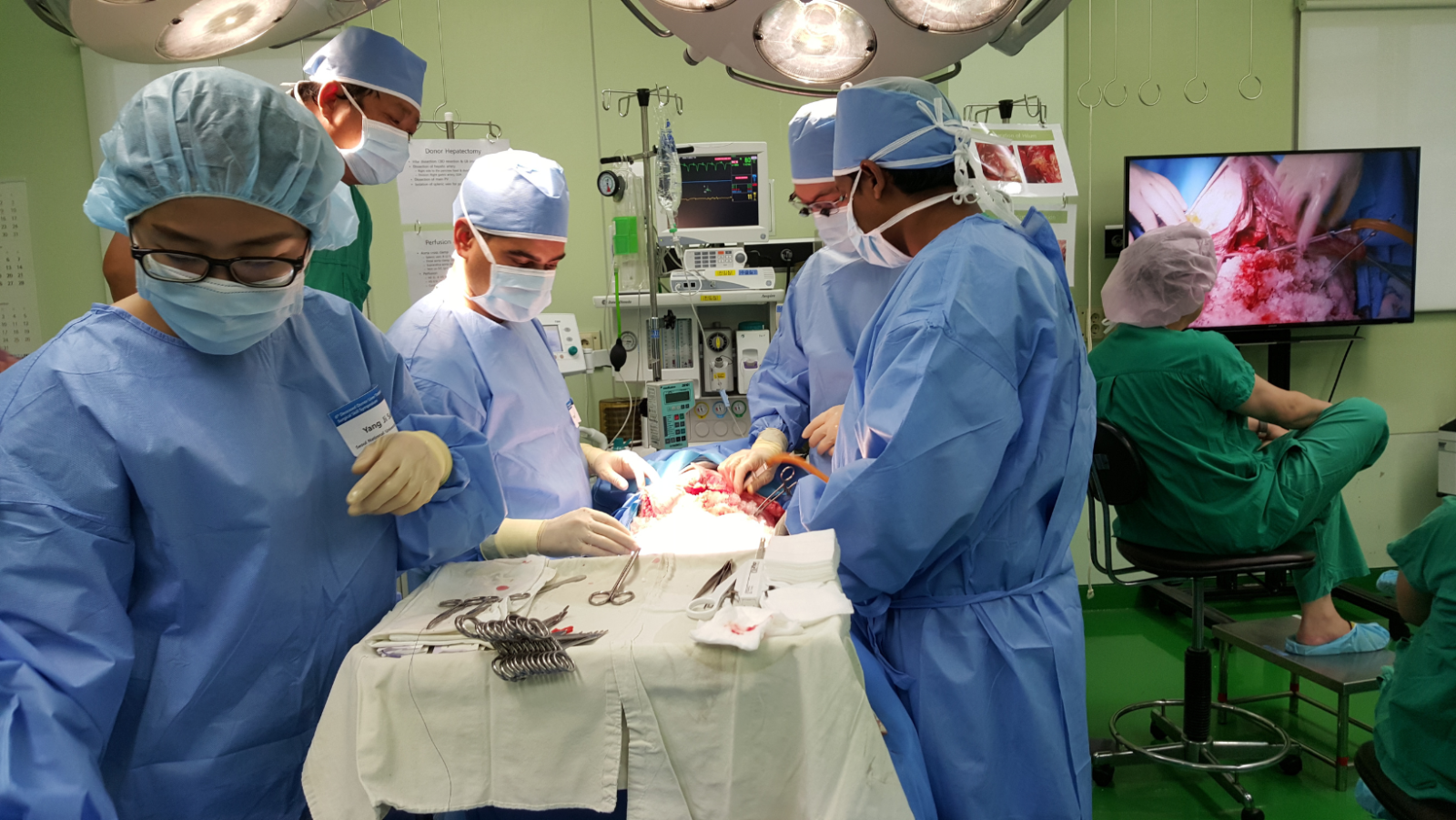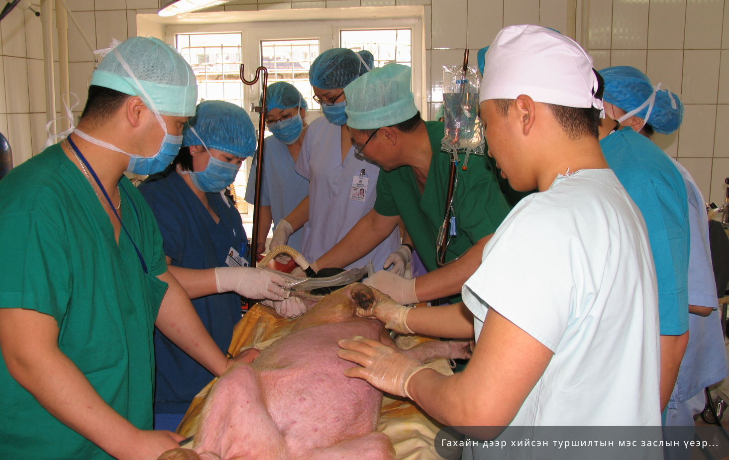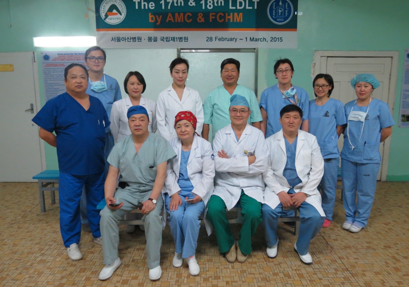 -44 настай эмэгтэйд хийсэн. Хүүгээс нь элэг авсан. Хүү нь 21-тэй байсан. 2011 оны 09-р сард анхны хагалгаагаа хийсэн. Одоо эсэн мэнд, сайхан амьдарч байгаа. Гэхдээ тэр их сонин тохиолдол болсон. Анхны элэг шилжүүлэн суулгуулах хүн маань Солонгост амьдарч байсан. Элэг шилжүүлэн суулгуулах гээд Асан эмнэлэг дээр сүмийн журмаар очсон. Сүмийн журмаар болохоор хөнгөлөлттэй, төлбөргүй хийдэг байсан юм шиг байгаа юм. Тэр хүнийг Асан эмнэлгийнхэн тэндээ бэлдээд хагалгаа хийх бүх бэлтгэлийг хангаад авчирсан. Хүү нь монголд байсан. Хүүгийн бүх шинжилгээг бид эндээ бүрдүүлж явуулсан. Тэр хүн маань одоо Солонгост Ли профессорын хяналтанд байгаа.
