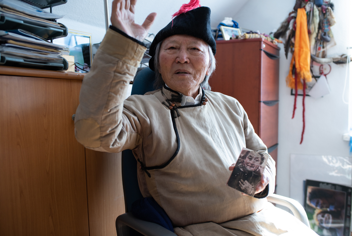 -Над шиг олон хүн байхгүй. Би бол цор ганц. Над шиг тува, эсвээс монгол хүүхдүүд олон л доо. Гэхдээ би бол чулуун зэвсгийн үед хүн болж бүрэлдээд феодализмын сургаалиар урагш хөдөлж, шууд социализтай залгасан нэгэн. Одоо гэтэл капитализмыг үзээд явж байна. Энэ бол хүнд нэг л тохино. Нутагтаа очиход минь надтай цуг чулуун зэвсгийн үед төрсөн хүүхэд алга. Би ганцаар үлджээ. Нутгийнхан минь намайг их сайхан зочилж угтсан. Би тэднийхээ бэлэглэсэн тува цамцыг яг одоо өмсөөд сууж байна.