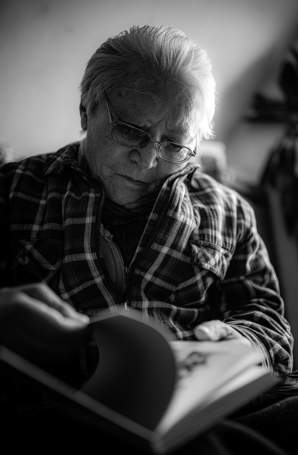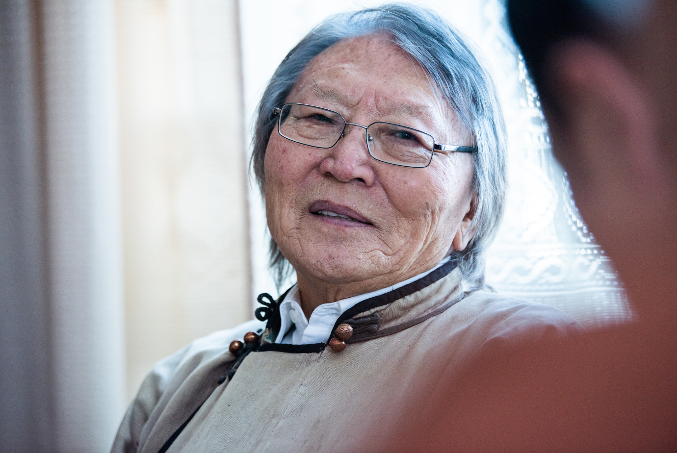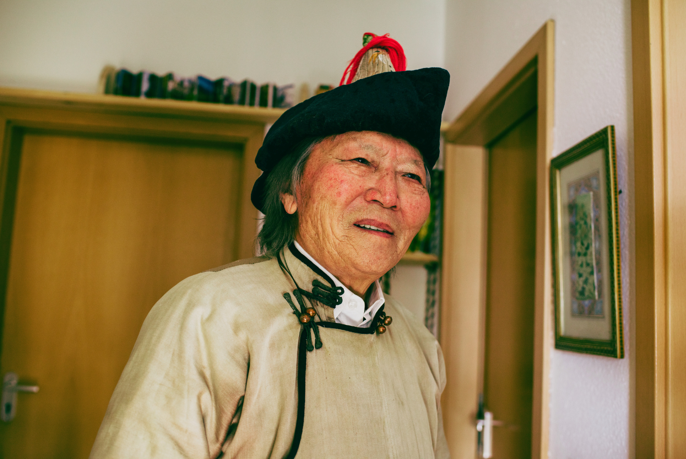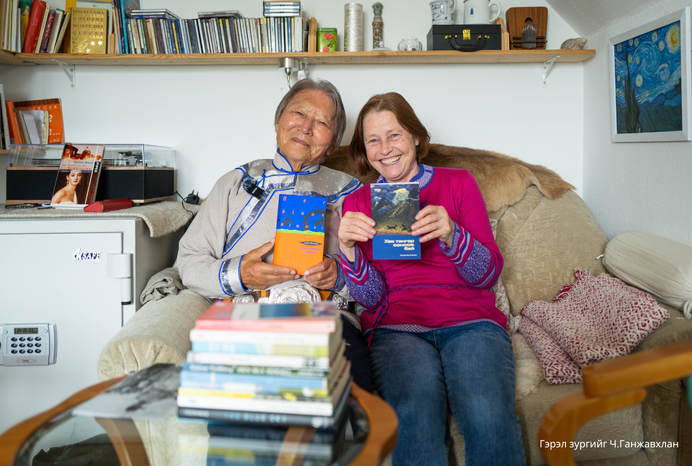 Түүнийг зорин очихдоо зам жаахан будилж, хэлсэн цагаасаа хоцорчихвий хэмээн ихэд санаа зовнив. Цагийг баримтлах нь түүний гол зарчмуудын нэг учраас тийн сэтгэсэн хэрэг л дээ. Өвгөн хаалгаа онгойлгож, эхнэр нь нохойгоо хорьсоор биднийг угтан авлаа. “Тэнгэр уйлагнаад сэрүүхэн байна. Хүүхдүүд ийшээ суу! Сайхан халуун цай уучих” хэмээхүй Сабина цалин цагаан домбоноос цай аягалж, Ч.Галсанд дээжлэн бариад дараа биднийг хүндлэн шинэхэн чанасан цайгаа хоёр гардан өгөв. Үүдний өрөөний наана байрлуулсан төмөр зууханд түлээний мод “чад пад” хийн ноцно. Үг яриа цэгцтэй, тува дээлээр гангарсан их зохиолчийг хүндлэх сэтгэл өөрийн эрхгүй төрөхүйд бодож явсан асуултуудаа толгойдоо хэдий нь хутгаж, холиод орхисон мэт болоход ямархан асуултаар яриагаа эхлүүлэх вэ хэмээн дахин нэг бодож амжив.