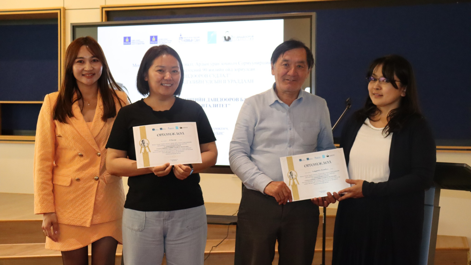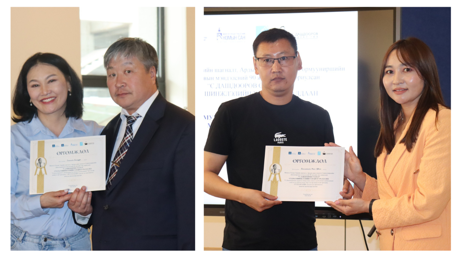 Тусгай байр: Б.МАРАЛГУА "Зохиолч С.Дашдооровын арван үлгэрийн анхны "Алтан хараацай" шүлгэн үлгэрт хийсэн задлан шинжлэл сэдвээр тус тус байр эзэлж шагналыг гардууллаа.