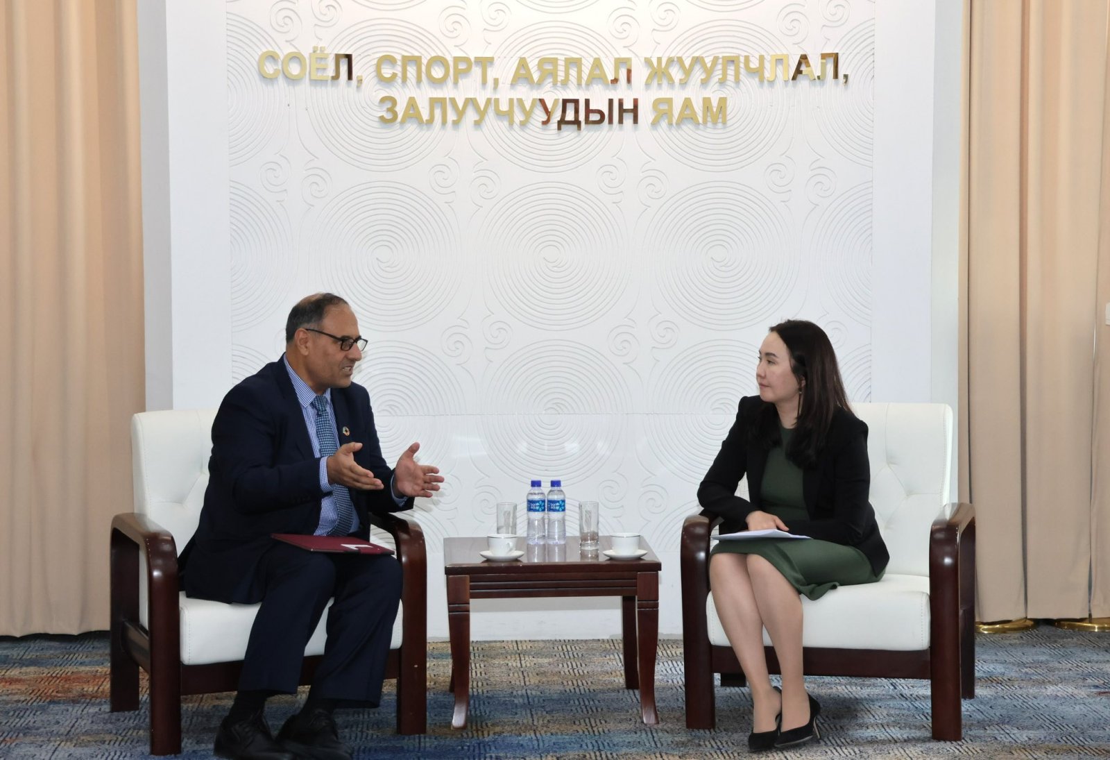 Соёл, спорт, аялал жуулчлал, залуучуудын сайд Ч.Ундрам Монгол дахь Нэгдсэн Үндэстний Байгууллагын Хүн амын сангийн Тэргүүн Халиф Шарифийг хүлээн авч уулзлаа.