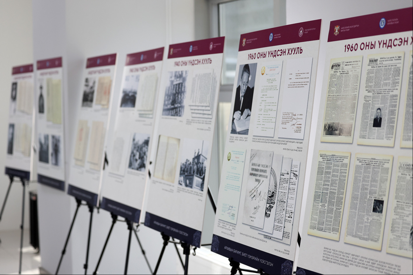 1924, 1940, 1960, 1992 оны Үндсэн хууль, Үндсэн хууль зохиох бэлтгэл ажил, Анхдугаар Үндсэн хуулийн төсөл зохиох комиссыг томилсон тогтоол, Д.Бодоо, Ж.Цэвээн нарын боловсруулсан Үндсэн хуулийн төсөл, Анхдугаар Үндсэн хуулийг баталсан Улсын Их Хурлын тогтоол, Үндсэн хууль зохиох комиссын гишүүд болон Үндсэн хуулийн төслийг боловсруулах, баталсантай холбогдох гэрэл зургийг байрлуулжээ.
