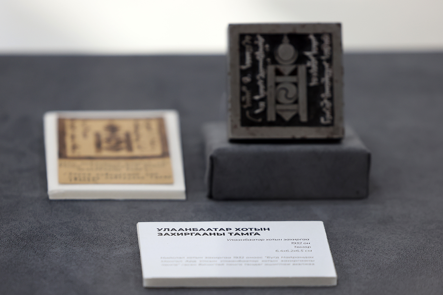 1924 онд нийслэл хотын Түр, Жинхэнэ захиргааны анхны дарга М.Баярын гэрэл зураг, Нийслэл Хүрээг Улаанбаатар хот хэмээн нэрийдэх, хотын түр захиргааг жинхэнэ захиргаа болгох тухай Улсын Анхдугаар Их Хурлын тогтоол, нийслэлийн Түр Захиргааны дарга, гишүүдийг сонгож томилсныг баталсан Хороодын төлөөлөгчдийн хурлын тогтоол, Түр захиргааны дүрмийг баталсан Ардын Засгийн газрын хурлын тогтоол, Монгол Улсын хотын түр захиргааны дүрэм, Улаанбаатар хотын захиргааны газрын дагаж явах дүрэм, Улаанбаатар хотын олон хороодын дарга нарын дагаж явах дүрмийн бичмэл болон хэвлэмэл эх, Нийслэлийн Түр, жинхэнэ захиргааны тамга, 15 дугаар хорооны захирлагын тэмдэг, Нийслэлийн хороодын төлөөлөгчдийн анхдугаар хурлын тогтоол, Хотыг сайжруулах комиссын хурлын тогтоол, хотын жинхэнэ харьяат болохыг хүсэгчид, хотын амьдралыг харуулсан баримт, гэрэл зургийг байрлуулсан байна.
