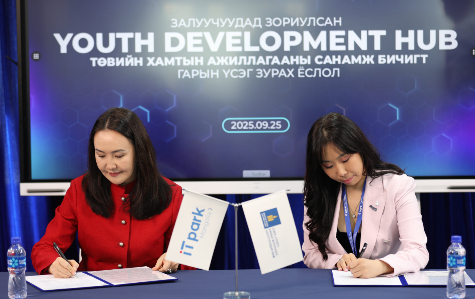 Соёл, спорт, аялал жуулчлал, залуучуудын сайд Ч.Ундрам Мэдээлэл технологийн үндэсний паркийн захирал Ж.Золзаяа нар залуучуудад зориулсан “Youth Development Hub” төвийн хамтын ажиллагааны санамж бичигт гарын үсэг зурлаа.