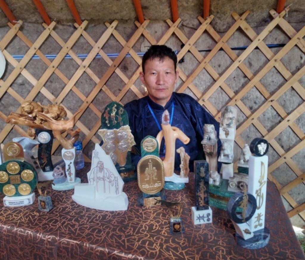 -Намайг П.Эрхэмбаяр гэдэг, би гар урлал эрхэлдэг. Ааваасаа энэ ажлыг өвлөн авсан. Аав минь гарын уртай хүн байдаг. Байгалийн чулуу, битүү модыг ашиглаж чулуун өргөмжлөл буюу бэлэг дурсгалын зүйл хийдэг.