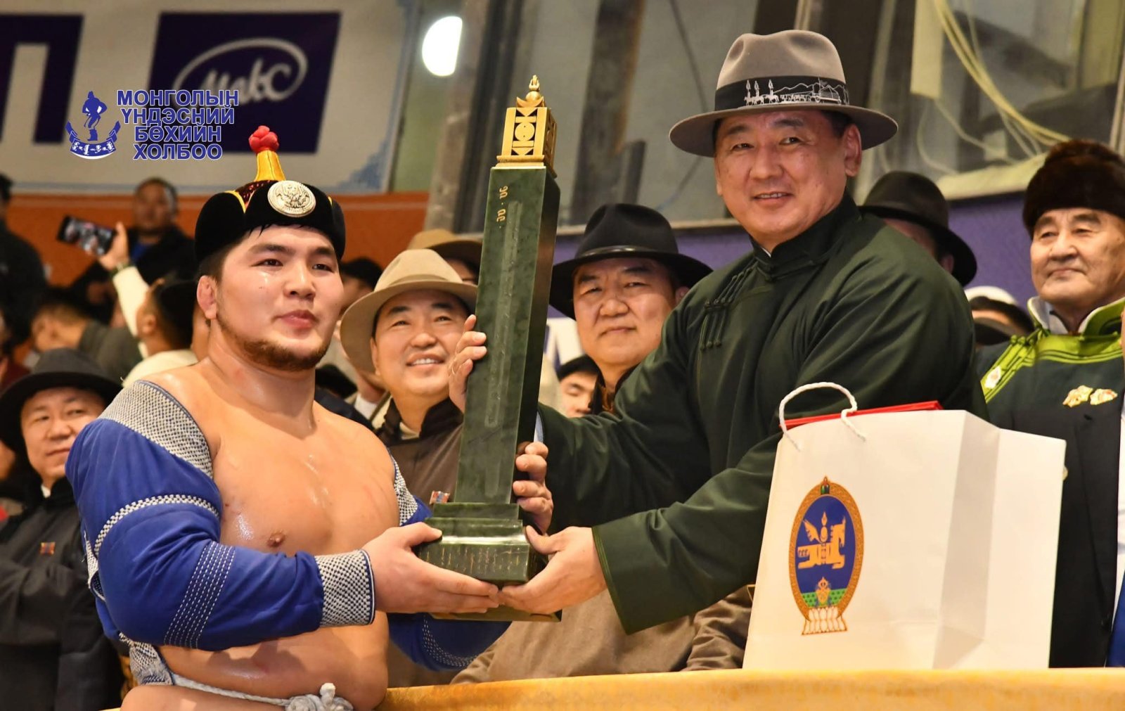 Үндэсний эрх чөлөө тусгаар тогтнолоо сэргээн мандуулсны 113 жилийн ойд зориулсан “Ерөнхийлөгчийн нэрэмжит цом”-ын төлөөх шилдэг 128 бөхийн барилдаанд Баянхонгор аймгийн Жинст сумын харьяат, "Алдар" спорт хороо, Эм Си Эс групп, Богд Банк, Хос Хаш Оюу ХХК-нийн бөх, улсын начин Энхтүвшиний Батмагнай түрүүлж, “Ерөнхийлөгчийн нэрэмжит цом”-ыг анх удаагаа гардсан бол Баян-Өлгий аймгийн Улаанхус сумын харьяат, "Сүлд" спорт хороо, ШШЕГ 439-р анги, “Бес Богда” дэвжээний бөх, улсын заан Бердимуратын Серик үзүүрлэв.