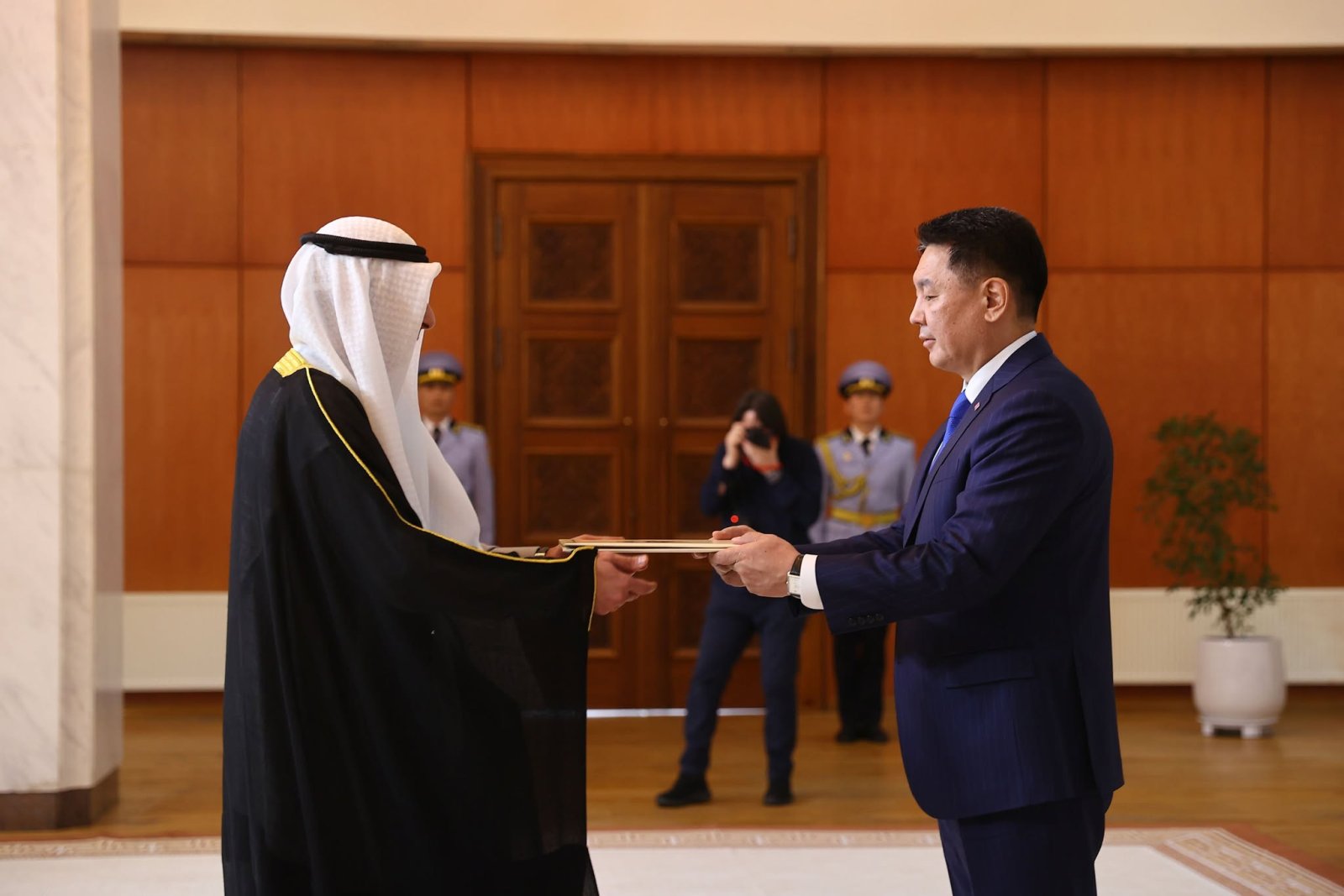 Ерөнхийлөгч Ухнаагийн Хүрэлсүхэд Кувейт Улсаас Монгол Улсад суух Онц бөгөөд Бүрэн эрхт Элчин сайд Мутлак А.М.Альтувимер Итгэмжлэх жуух бичгээ өргөн барилаа.