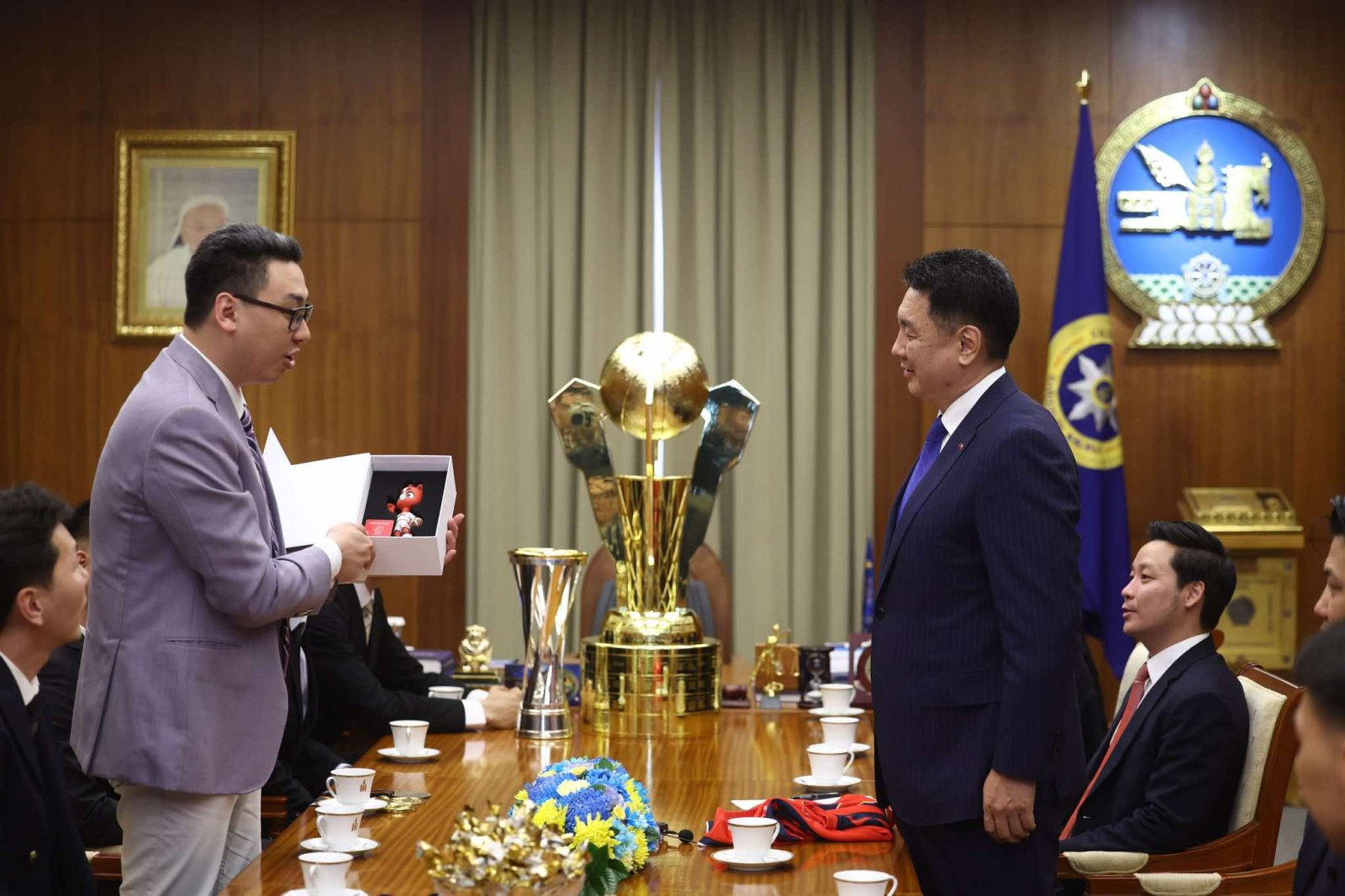 Монгол Улсын Ерөнхийлөгч Ухнаагийн Хүрэлсүх Монголын сагсан бөмбөгийн холбооны Үндэсний дээд лигийн есөн удаагийн аварга “Хасын хүлэгүүд” багийн бүрэдлэхүүнийг хүлээн авч уулзлаа.