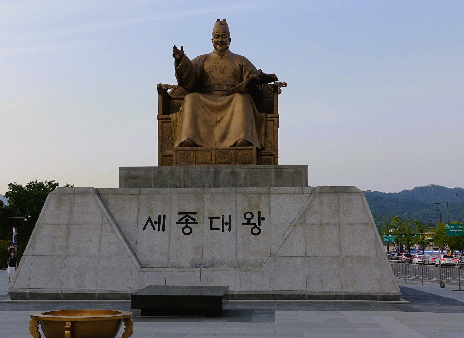 Гуанхуамүн талбай, энд ч мөн шинэ үеийн хувьсгал өрнөж, түүний цаад мөн чанарыг үл ухсан нь Пак Гынь Хег өрөвдөж, харин тэд өөрсдийн эрх чөлөөг олж авчээ. Харин талбайд буй хөшөө бол солонгосын анхны үсгийг зохиосон бичгийн их мэргэн, одон орны шинжлэх ухаан судлаач Сэжунг хаан юм. Учир нь тэдэнд өөрийн бичиг үсэг байгаагүй тул хятад ханзыг өөрсдийн хэлний дуудлагатай ижилсүүлэн шууд авч хэрэглэдэг байв. Харин Сэжунг хаан ард түмнийхээ хэлэнд тохирсон өгүүлбэрийн бүтэцтэй, хэрэглэхэд хялбараас гадна үе болгон нь бичихэд тохиромжтой, 28 үсэг зохиосон нь Солонгос буюу Ханьгыл үсэг юм. Өдгөө солонгос улсад англи хэл түлхүү хэрэглэгдэх болсон бөгөөд иргэдийнх нь 15-аас дээш насныхны 98 хувь нь бичиг, үсэг тайлагджээ.