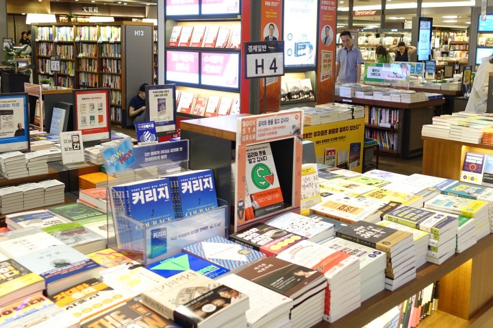 Болороо эгч бид хөшөөний урд зураг татуулаад буцан эргэж метроны буудлын дор байх хамгийн том номын сүлжээ дэлгүүрүүдийн нэг болох “Kyobo” -г зорилоо. Метроны буудал нь бараг газар дор байрлах хотын гудамжууд аятай сэтгэгдэл төрүүлнэ. Тэнд хананд нь солонгосын яруу найрагчдын шүлгүүдийг нэг ижил формат бүхий том хулдаасанд хэвлэн өлгөсөн байх жишээтэй. Харин номын дэлгүүрийн үүдэнд бидний сайн таних Тонни Моррисон, Гарсиа Маркес, Пабло Неруда, Франц Кафка, Эрнест Хемингуэй тэргүүтэй зохиолчдын зургийг ханыг нь цааш түрсэн гоёмсог хийцтэй шилэн хавтан дотор байршуулжээ.