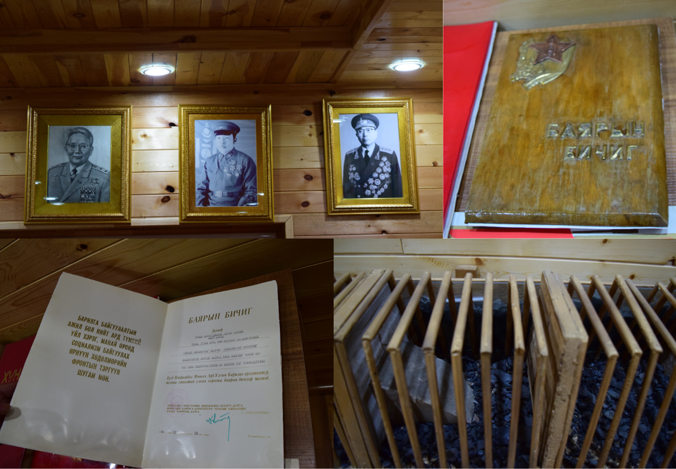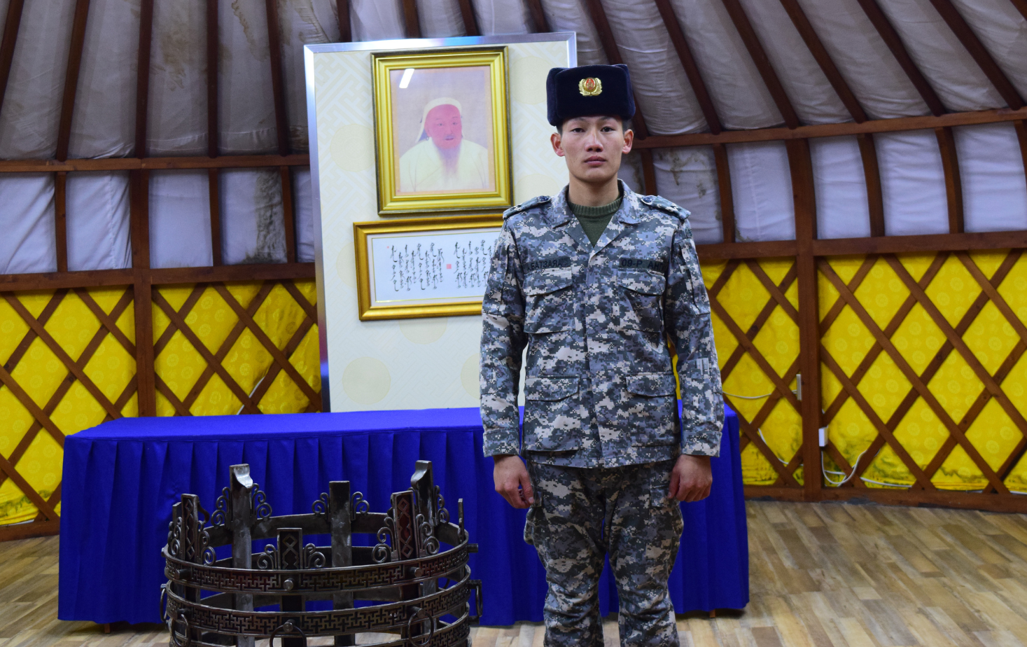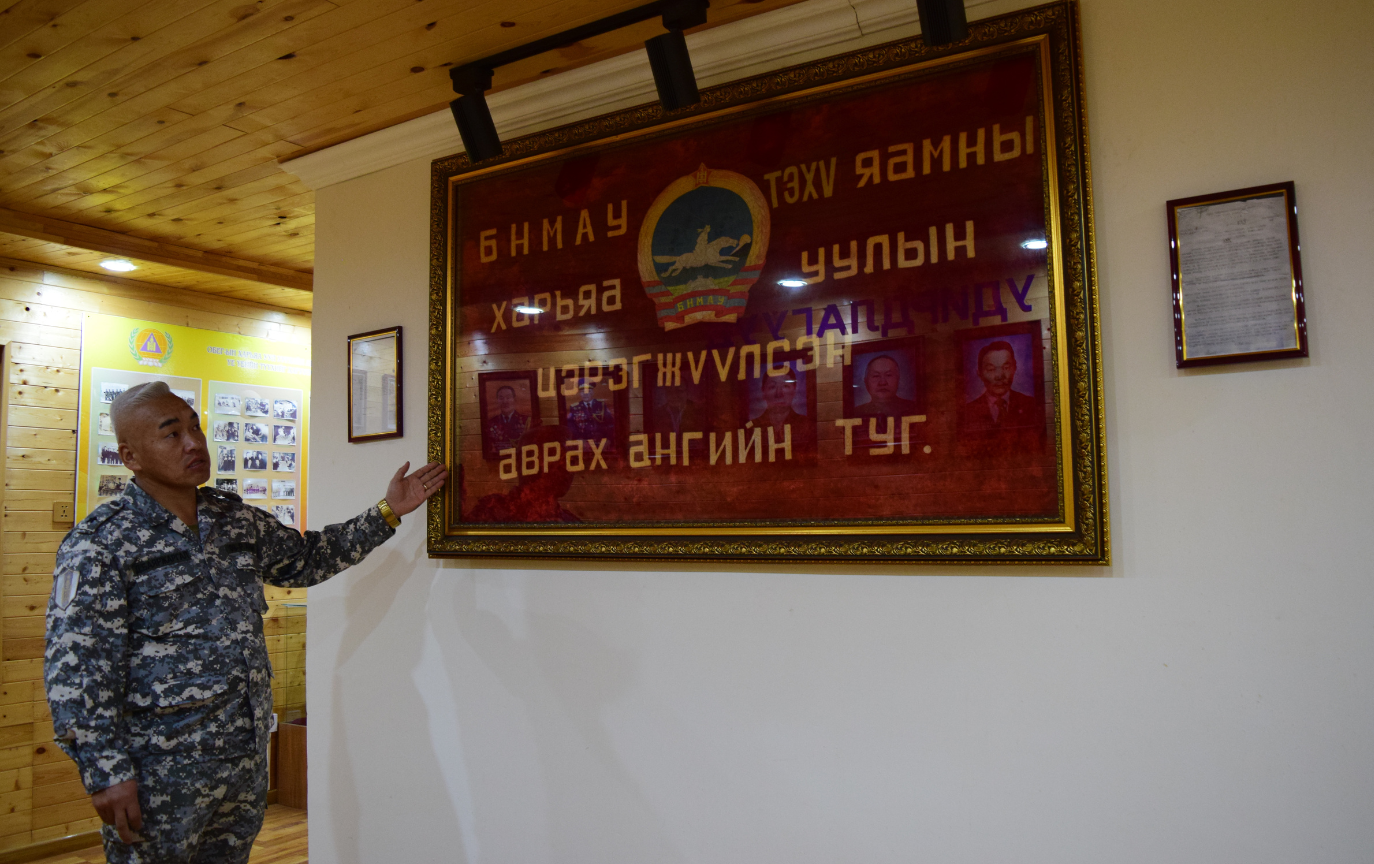 Дахин нэг хаалгыг нээн орвол хүндэтгэлийн өргөө байна. Хоймортоо Эзэн Чингис хааны хөргийг залж, өргөөний голд уран хийцтэй, сүрлэг тулгыг тавьсан нь нүдэнд тусна. Энэ тулгыг Аврагч, канат шалгагч А.Батзаяа гэх залуу урлажээ. “Энд байгаа бүхий л залуус өөрсдийн гэсэн онцгой авьяас билигтэй. Би энэ газарт 18 жил ажилласан ч тэд өдөр бүр гайхшируулдаг даа” гэж албаны дарга залуучуудаараа бахархан хэлэхэд түүний цагаан үс гялалзана. Тэр алба хаагчдынхаа дарга гэхээсээ илүү аав, ах шиг нь байхыг хичээдэг нь анзаарагдана. Албаны дарга Д. Баяржаргал үргэлж инээмсэглэнэ.