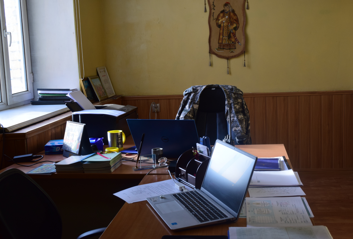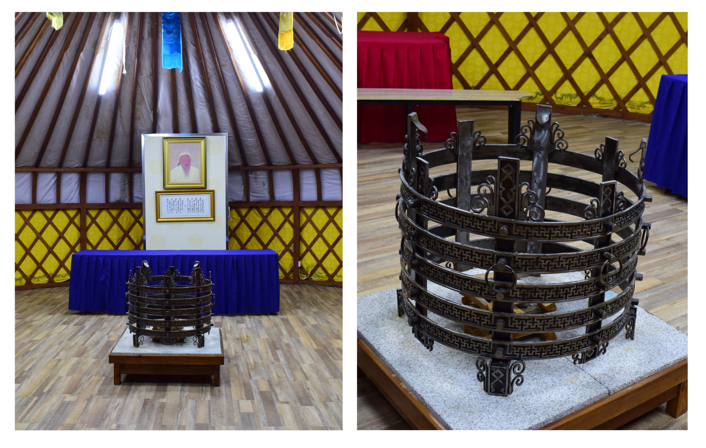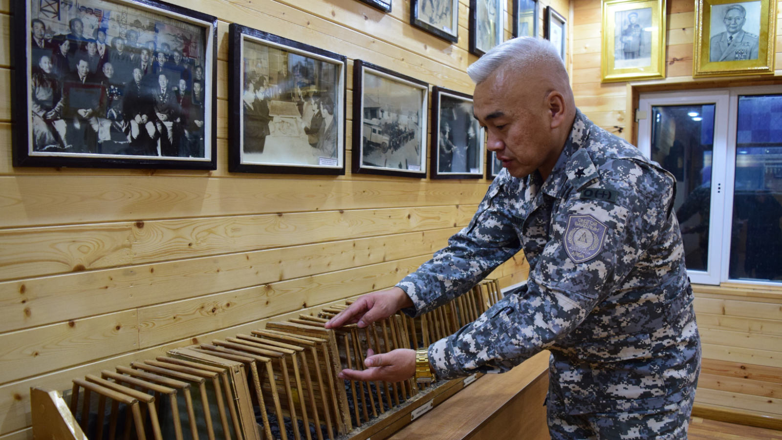 Дахин нэг хаалгыг нээн орвол хүндэтгэлийн өргөө байна. Хоймортоо Эзэн Чингис хааны хөргийг залж, өргөөний голд уран хийцтэй, сүрлэг тулгыг тавьсан нь нүдэнд тусна. Энэ тулгыг Аврагч, канат шалгагч А.Батзаяа гэх залуу урлажээ. “Энд байгаа бүхий л залуус өөрсдийн гэсэн онцгой авьяас билигтэй. Би энэ газарт 18 жил ажилласан ч тэд өдөр бүр гайхшируулдаг даа” гэж албаны дарга залуучуудаараа бахархан хэлэхэд түүний цагаан үс гялалзана. Тэр алба хаагчдынхаа дарга гэхээсээ илүү аав, ах шиг нь байхыг хичээдэг нь анзаарагдана. Албаны дарга Д. Баяржаргал үргэлж инээмсэглэнэ.