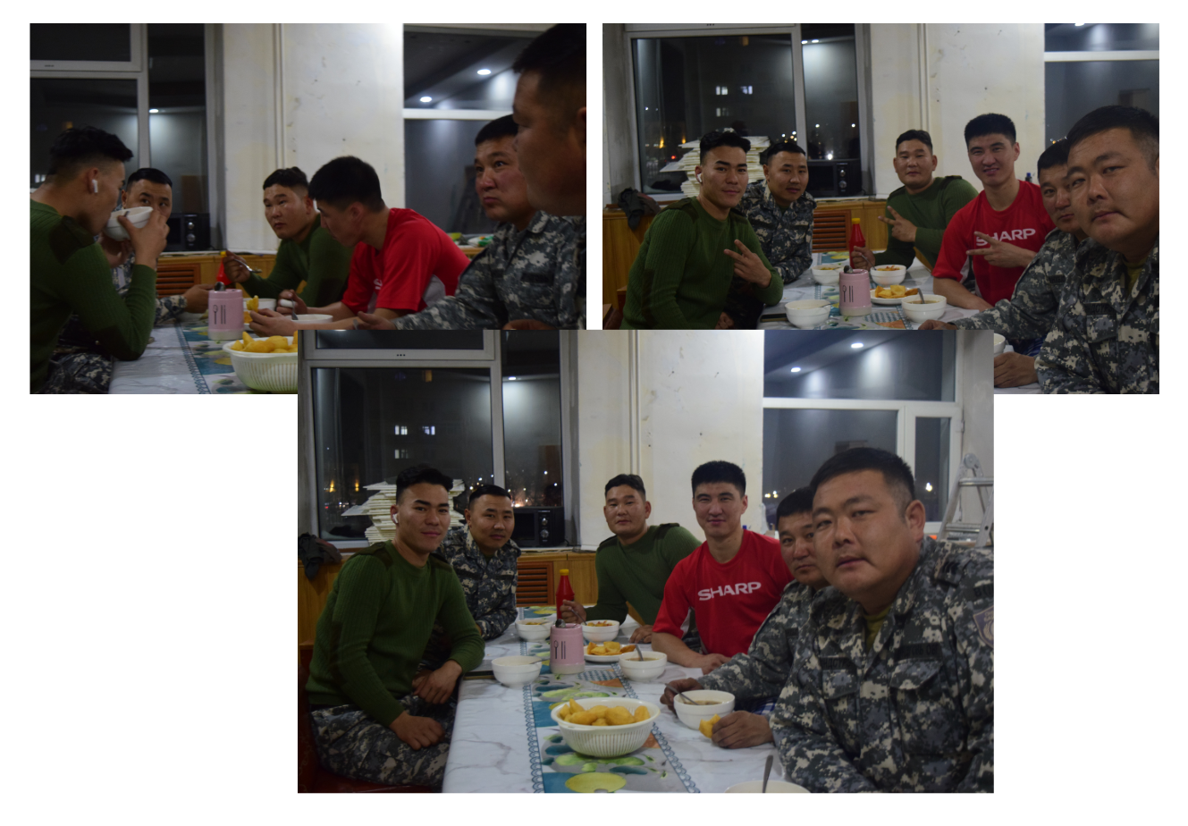 Оройн хоолны цаг болжээ. Өнөөдөр будаатай шөл, шинэхэн хайрсан боорцогтой. Алба хаагчид их амтархан идэхийг харахад тогооч эгчийн хоол ч амттай байдаг бололтой. Тэд хоолоо шалавхан идчихээд эргэж бөмбөгөө тоглохоор яарч байх шиг. Би ч автобус руугаа хурдлахаар шийдэн албаны даргатай хамт шалган руу зүглэв.